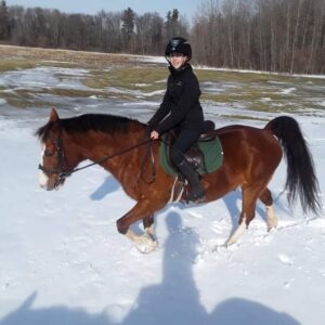 Penelope’s family began searching for another temporary equestrian partner. The summer of 2022, Penelope sat on her first warmblood, and Irish Sport horse named Isaiah. Penelope and Isaiah went on to place consistently in the ribbons on the Trillium Circuit in the 0.75m and 0.9m Jumper Divisions, all the while continuing to successfully explore multiple disciplines through combined training.